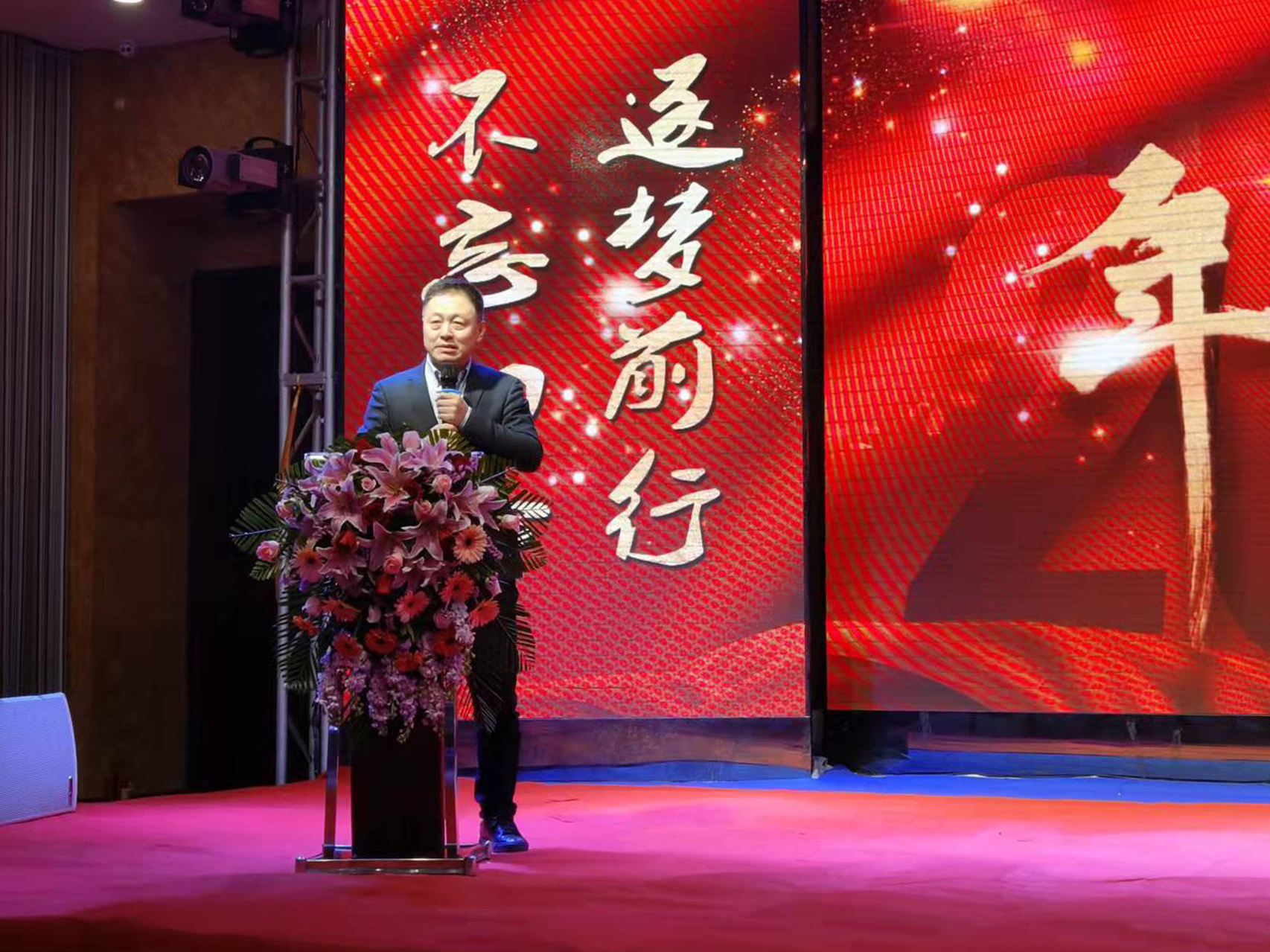 特約嘉賓陳峰陳總首先上臺(tái)致新年賀詞,分享了他從業(yè)二十多年的心得體悟,并對(duì)凱為精神進(jìn)行了高度贊揚(yáng),同時(shí)也對(duì)凱為人在新的一年提出新了的要求。