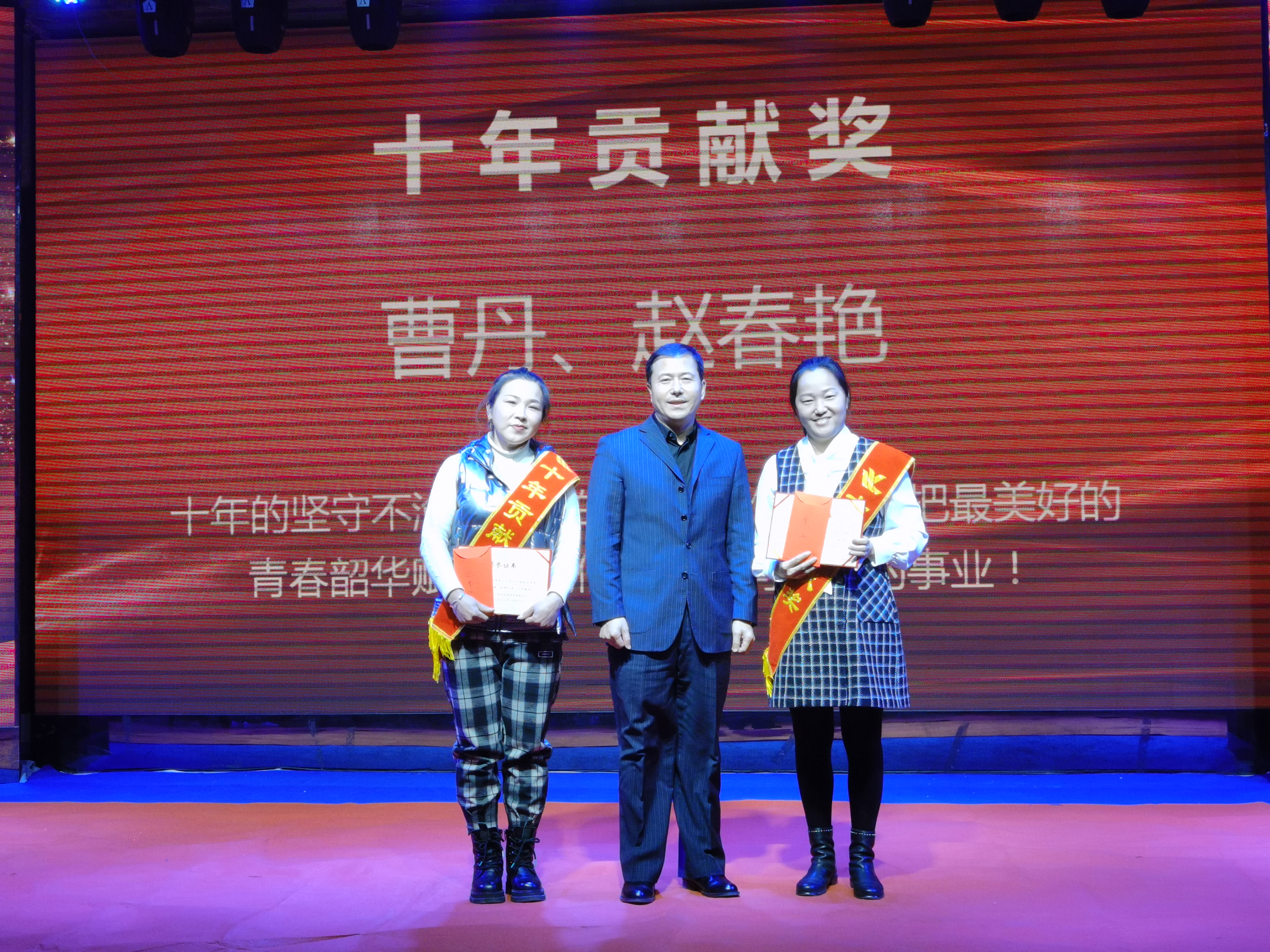 曹丹、趙春燕獲得十年貢獻(xiàn)獎(jiǎng),十年的堅(jiān)守不渝,十年的默默耕作,他們把最美好的青春韶華賦予了我們?yōu)橹餐瑠^斗的事業(yè),十年如一日他們時(shí)刻心系企業(yè)的憂(yōu)患,與企業(yè)同風(fēng)雨共命運(yùn)。公司總裁王鐵良為獲獎(jiǎng)?wù)?/span>頒獎(jiǎng)。